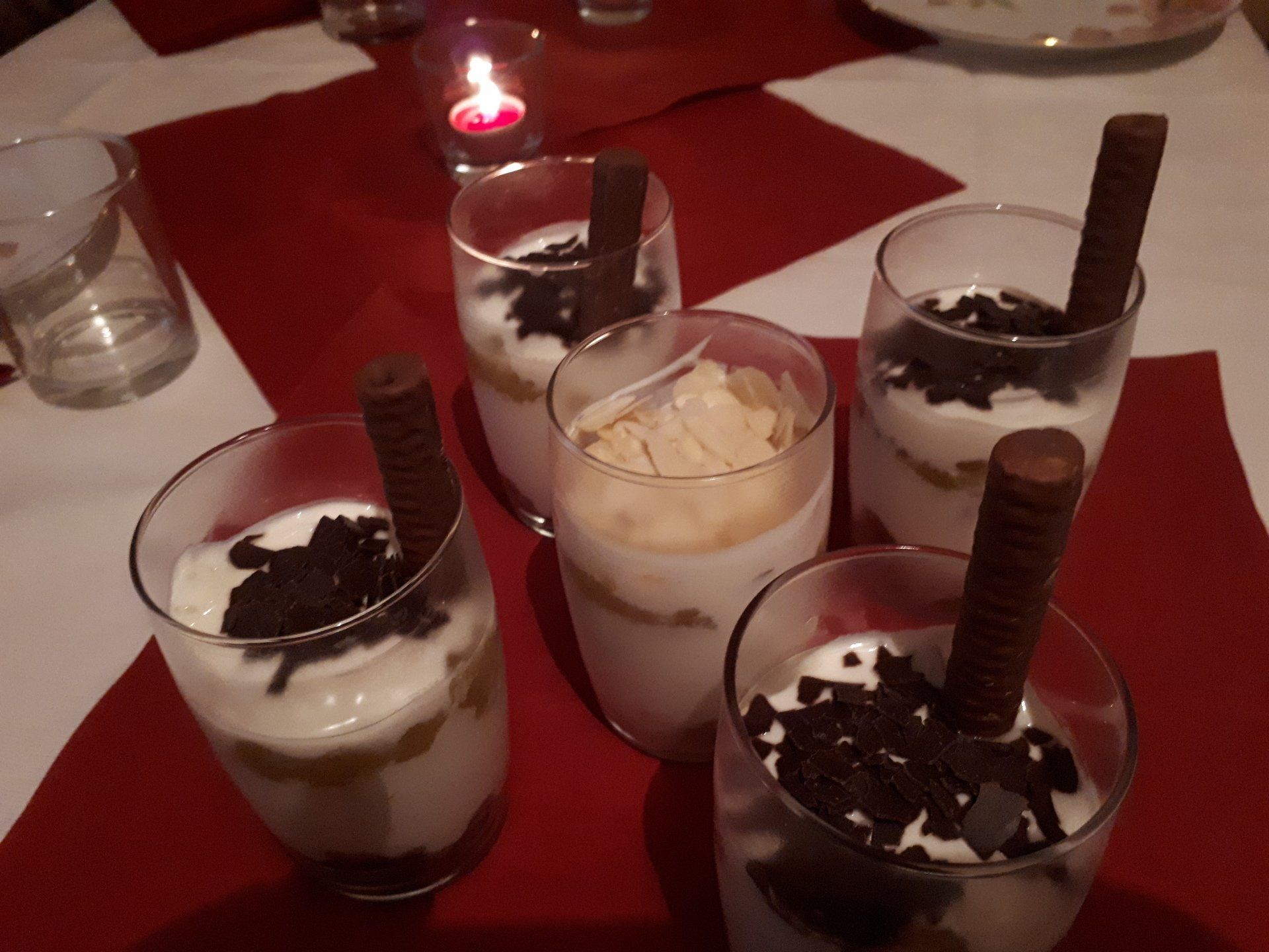 Ich liebe es, das Weihnachtsessen zuzubereiten und den Tisch entsprechend zu dekorieren. Das Dessert kreiere ich immer selbst. Ich habe sowohl süße, als auch eine Zuckerfreie Variante mir überlegt, die wie folgt geschichtet waren: